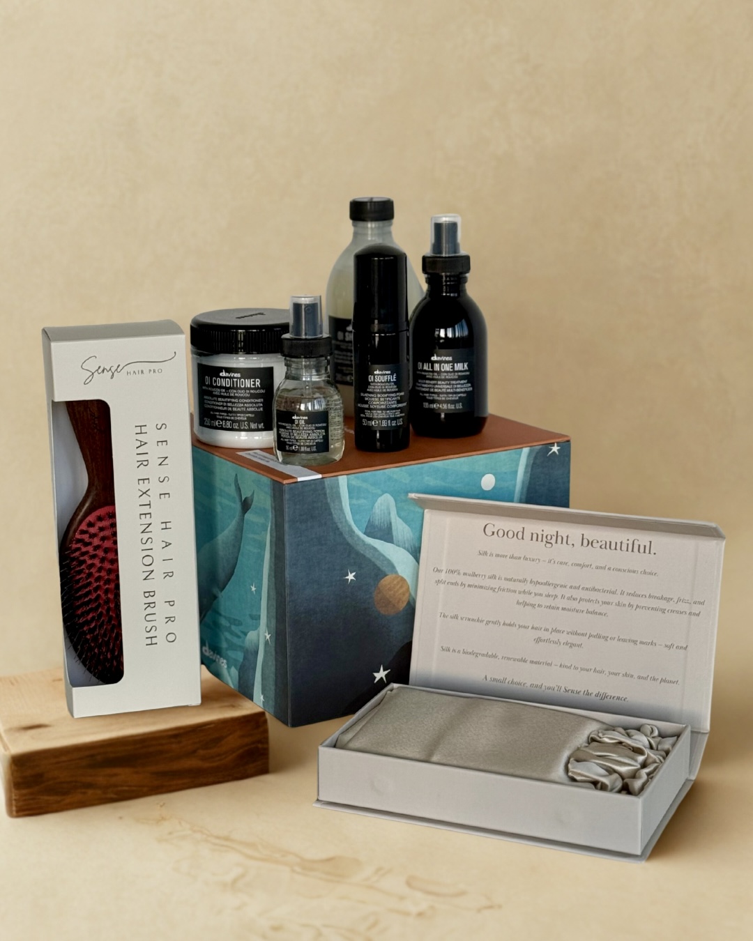 Ylellinen hiustenhoitosetti, joka yhdistää Davines OI -sarjan huippulaadukkaat tuotteet ja Sensen ylelliset hiustenhoitotarvikkeet. Tämä täydellinen lahjapakkaus tarjoaa kokonaisvaltaisen hoitoelämyksen – ravitut, kiiltävät ja hyvinvoivat hiukset sekä hellävaraisen arjen luksuksen.