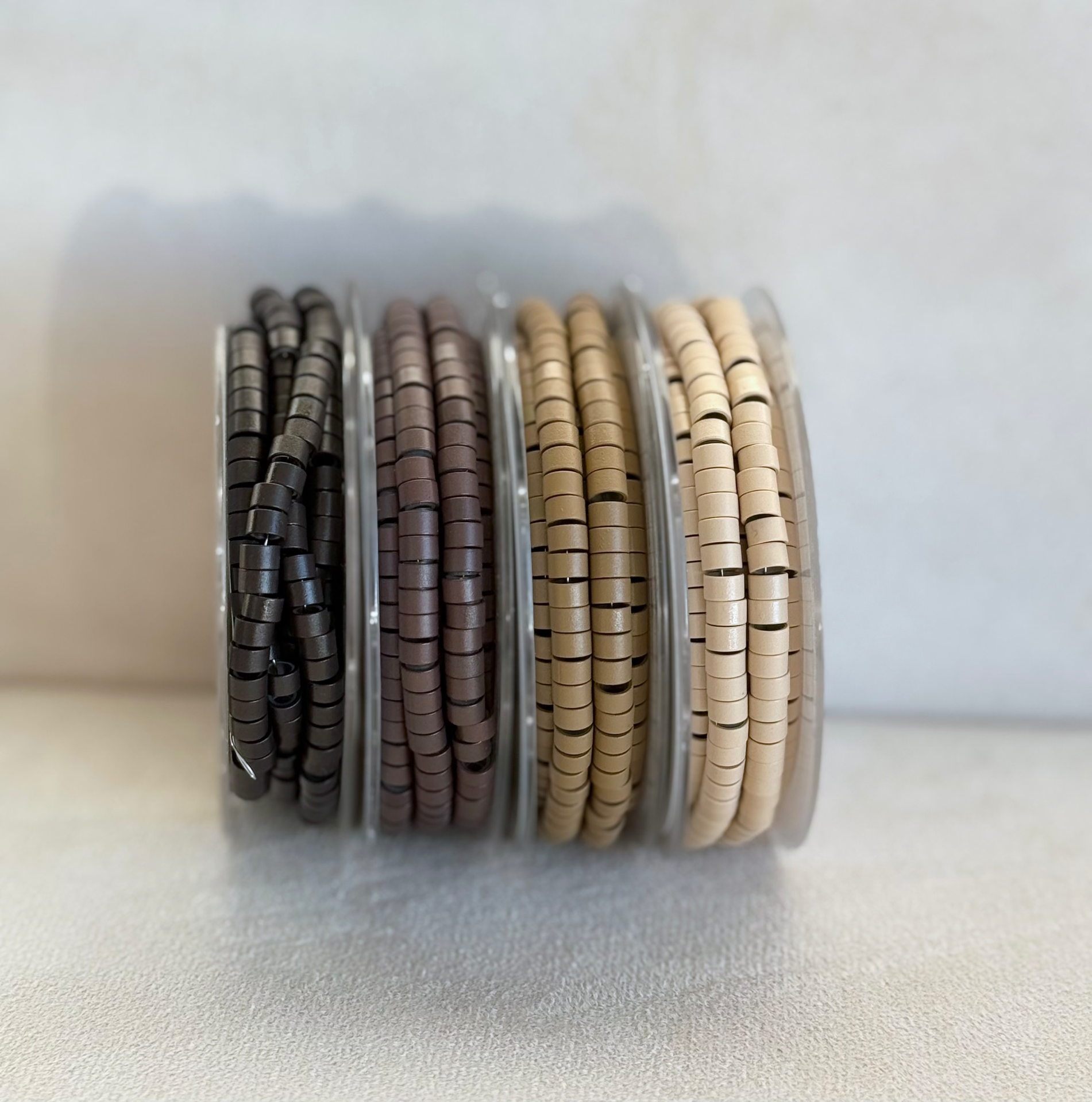 Nämä 5mm Helmet ovat valmiissa rullissa, joten niiden lataaminen loopiin on helppoa ja nopeaa! Sisäpuolen silikonipinta on hellävarainen hiusta vasten ja ulkopuolen alumiinipinta varmistaa hyvän pysyvyyden. Helmiä saatavilla neljässä eri värissä.