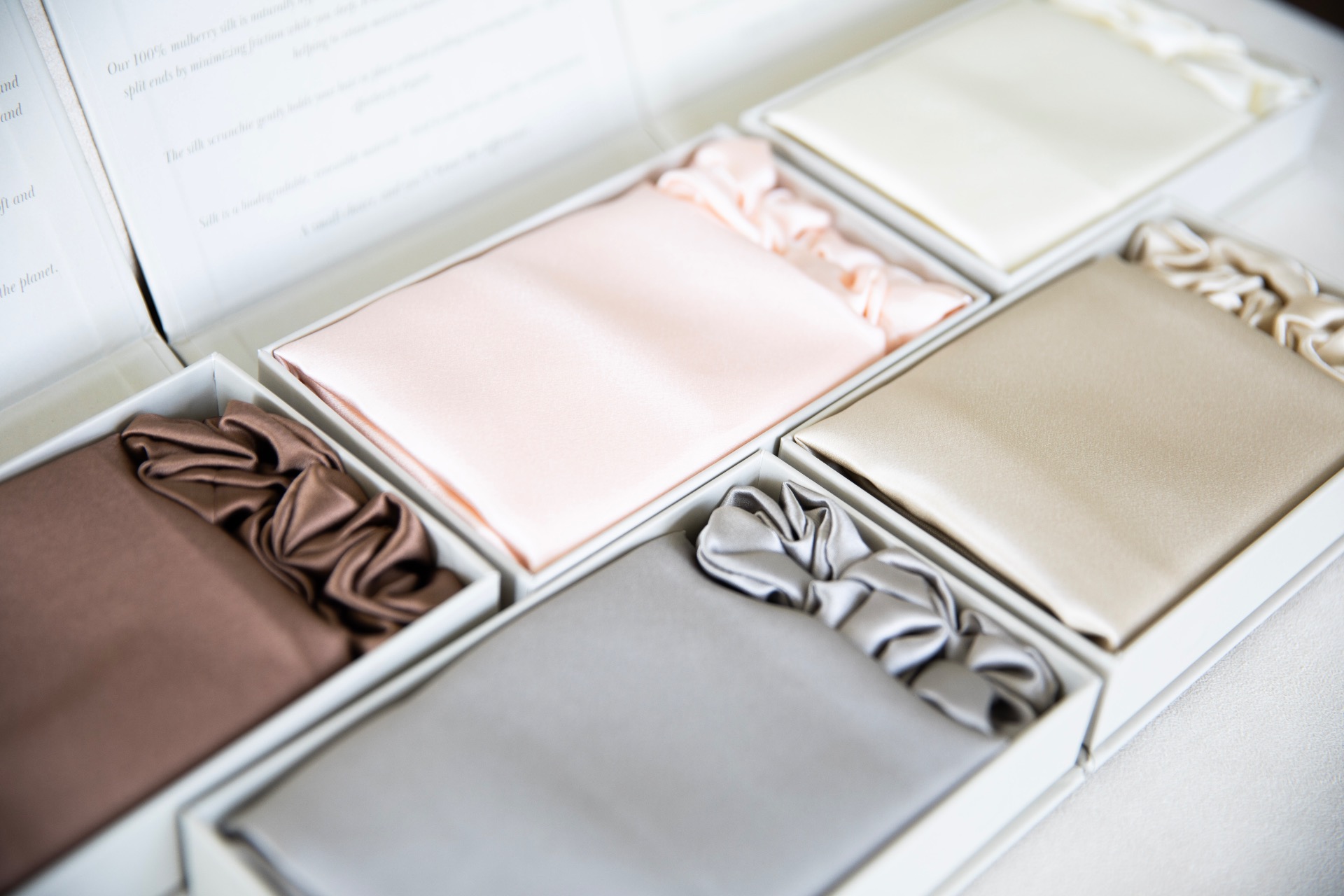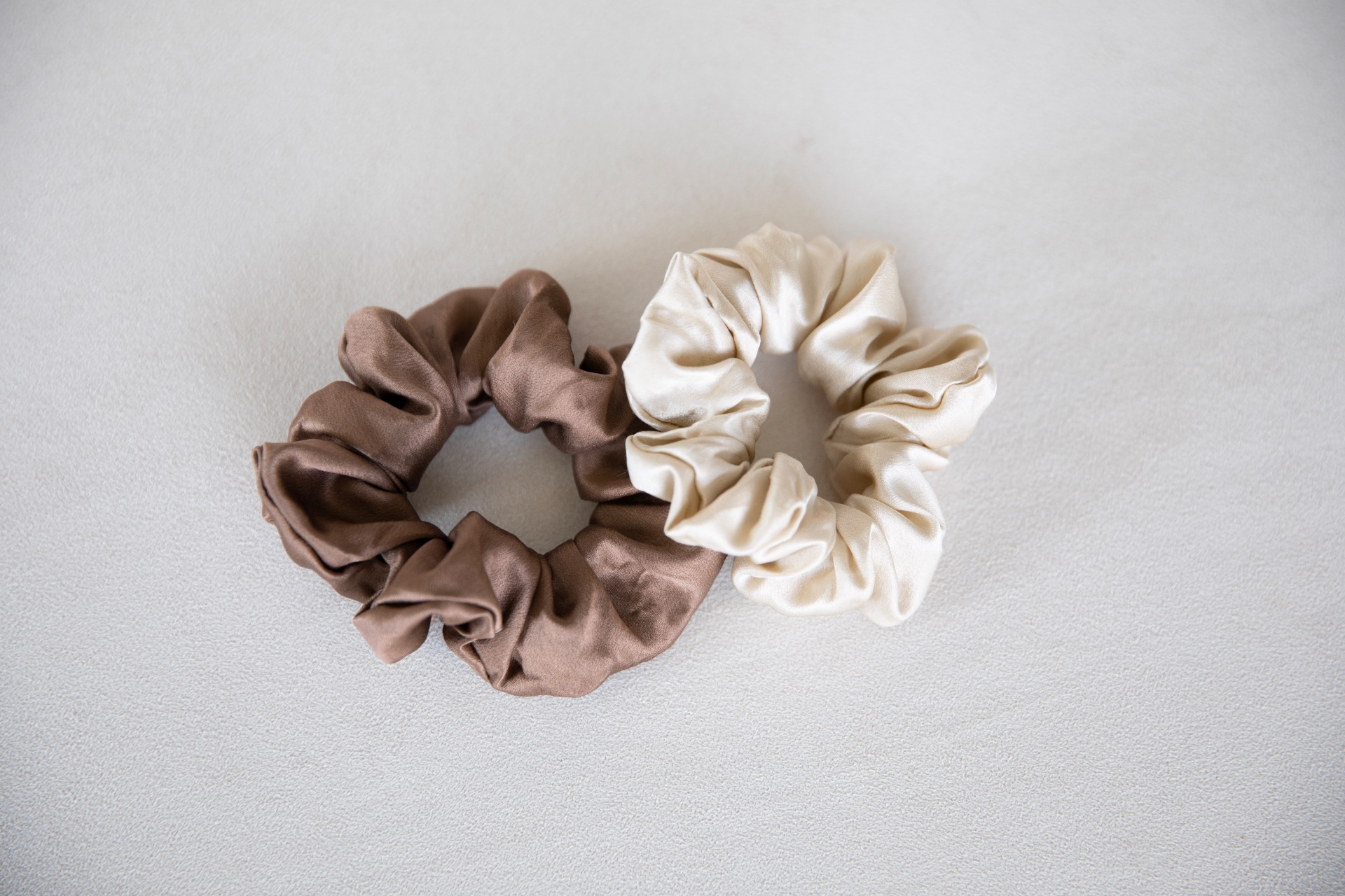 Silkkinen scrunchie puolestaan pitää hiukset paikoillaan pehmeästi, ilman kiristystä tai painaumia. Sopii erinomaisesti niin päivittäiseen käyttöön kuin yön ajaksi. Ylellinen tunne, joka todella näkyy hiuksissasi.